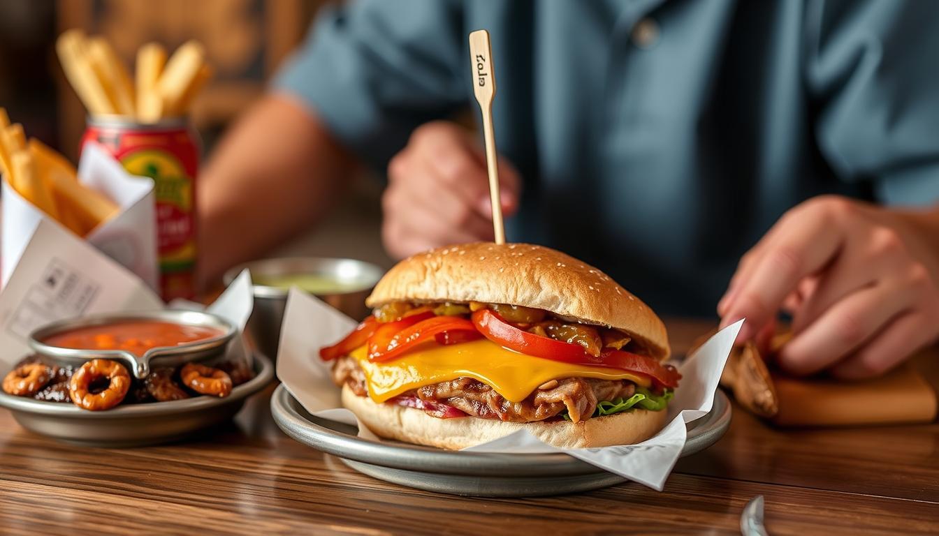 The pulled pork sandwich is another top choice. It combines juicy pork with BBQ sauce and crispy onions. It’s perfect for those who love meat.